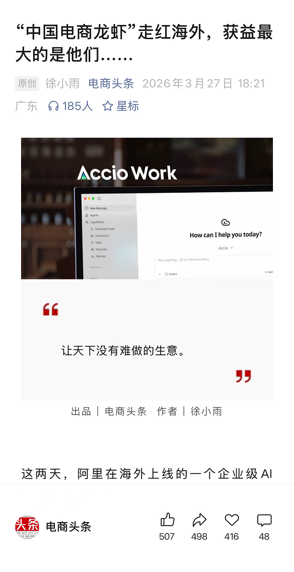 紧跟趋势,助力中国品牌出海,拥有“跨境派”等百万级头部账号。